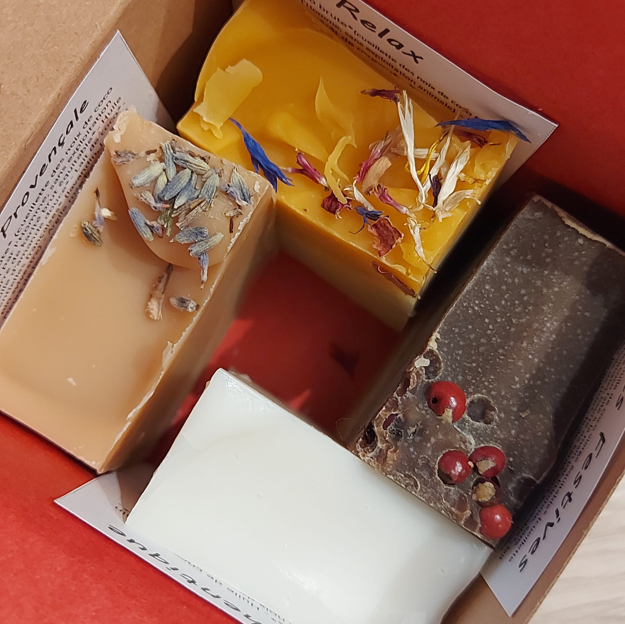 - Ne pas utiliser les 3 demi-savons parfumés chez l’enfant de moins de 6 ans, chez la femme enceinte et/ou allaitante (présence d’huiles essentielles)